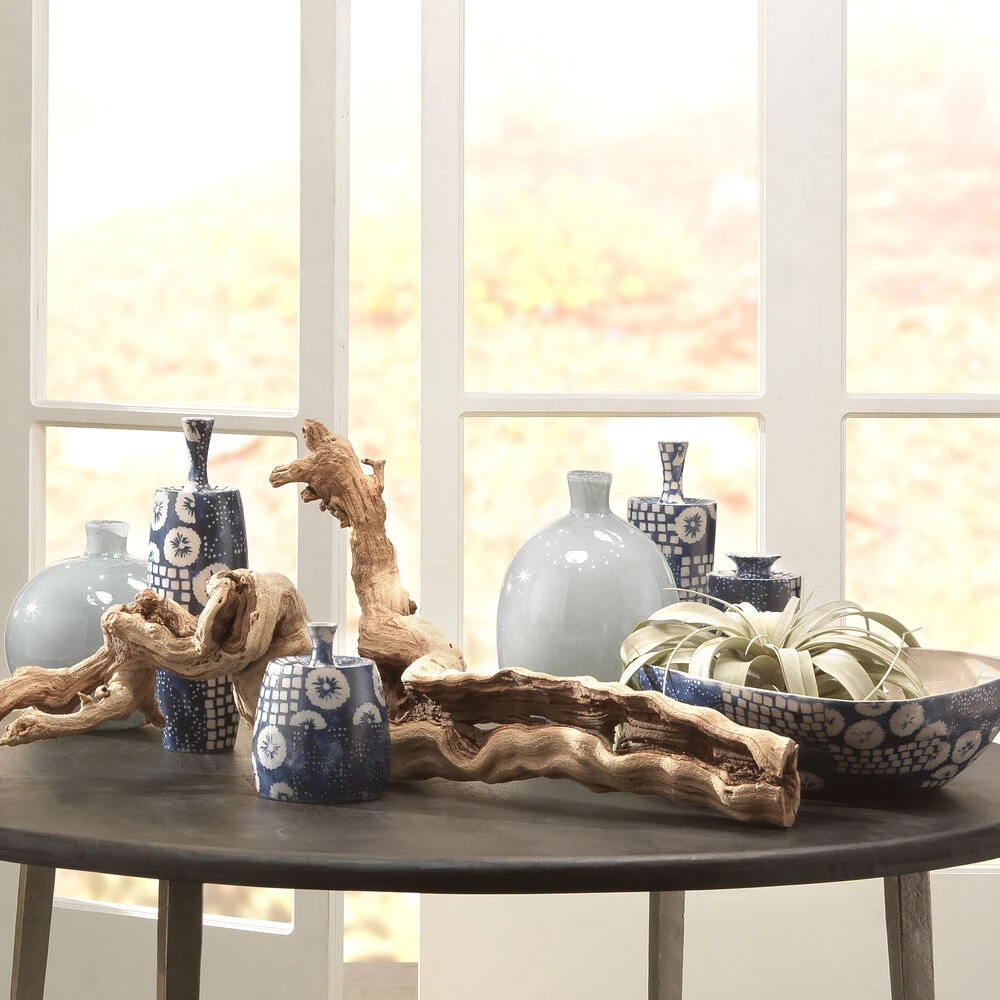Add charm and a pop of color to any room in your home with this collection of four ceramic vases. Decorated by artisans with block-prints reminiscent of kimonos still worn in parts of Japan. Neutral tones make it a go-to for all seasons as you swap out from fresh to dried florals. Shaped in assorted sizes, you can display separately or grouped together for a striking presentation.