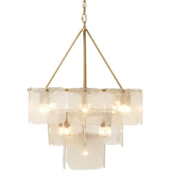 Perignon 24 Light 25 Inch Melted Ice Glass & Antique Brass Three Tier Chandelier Ceiling Light