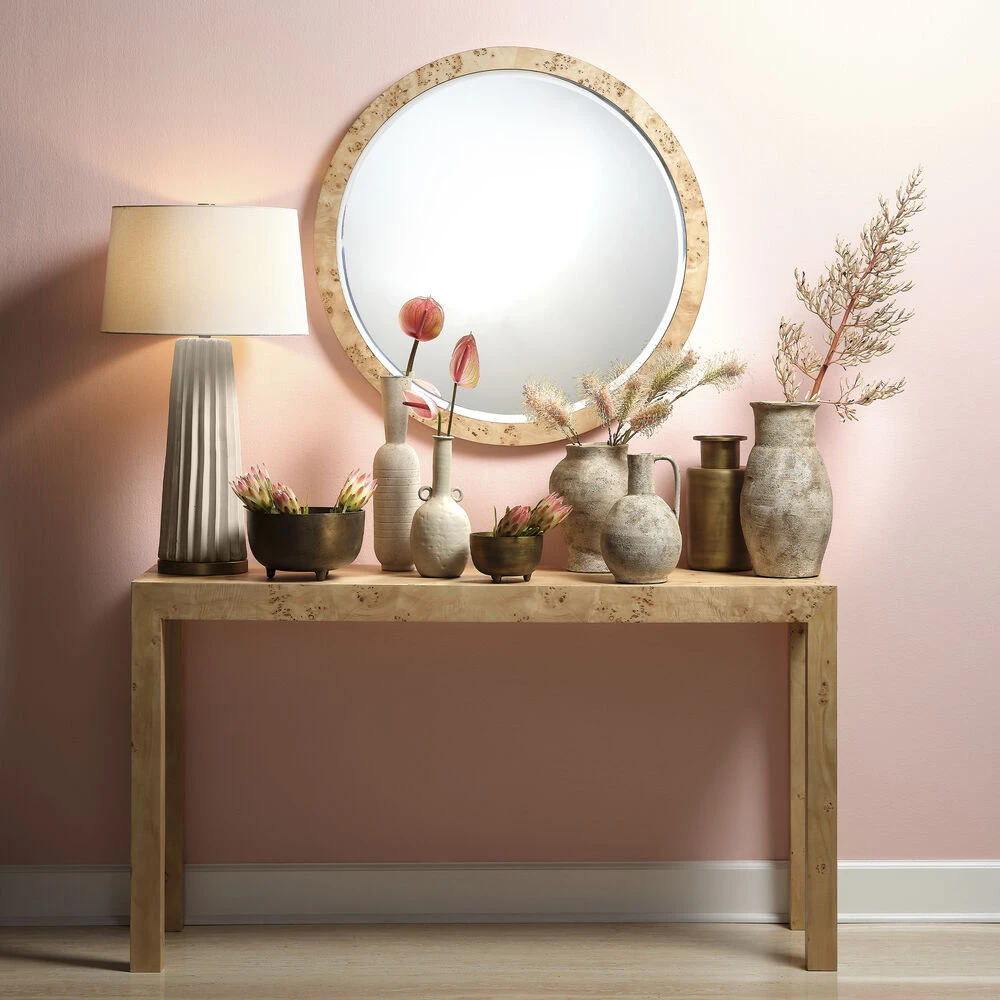 The classic lines of this wall mirror make it an easy addition to any room of the home, and the burnished beauty of its burl wood veneer frame makes it a spectacular one. With natural burl finishes, a beveled interior mirror, and a coordinating MDF back, these are the ideal choice to add an additional dimension to a gallery wall.