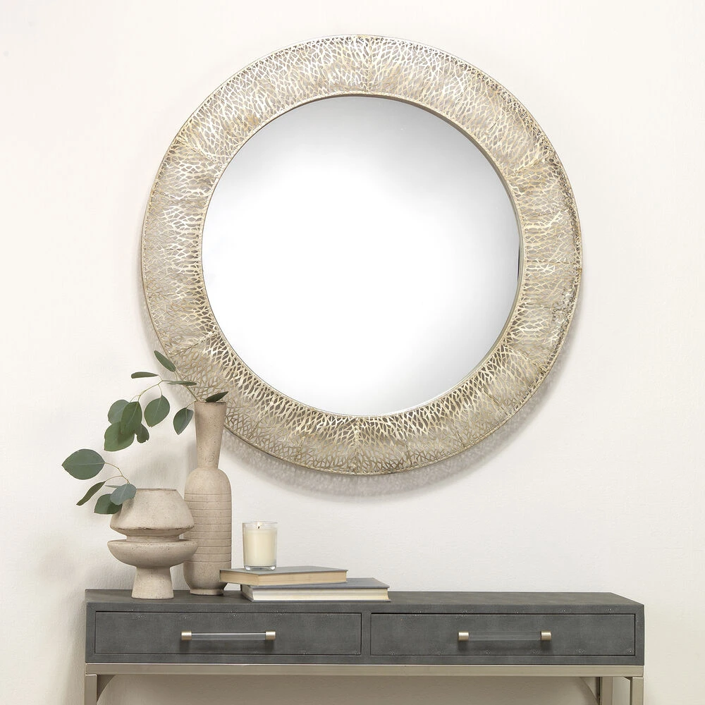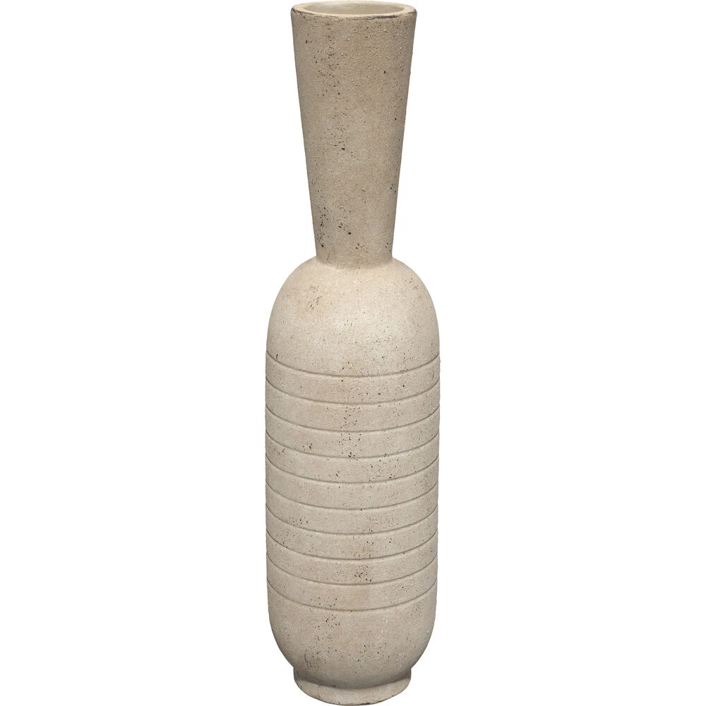 Decorative etching encircles the body of this graceful ceramic vase. With its rustic, gently antiqued cream finish, it makes an elegant addition to upscale casual interiors.