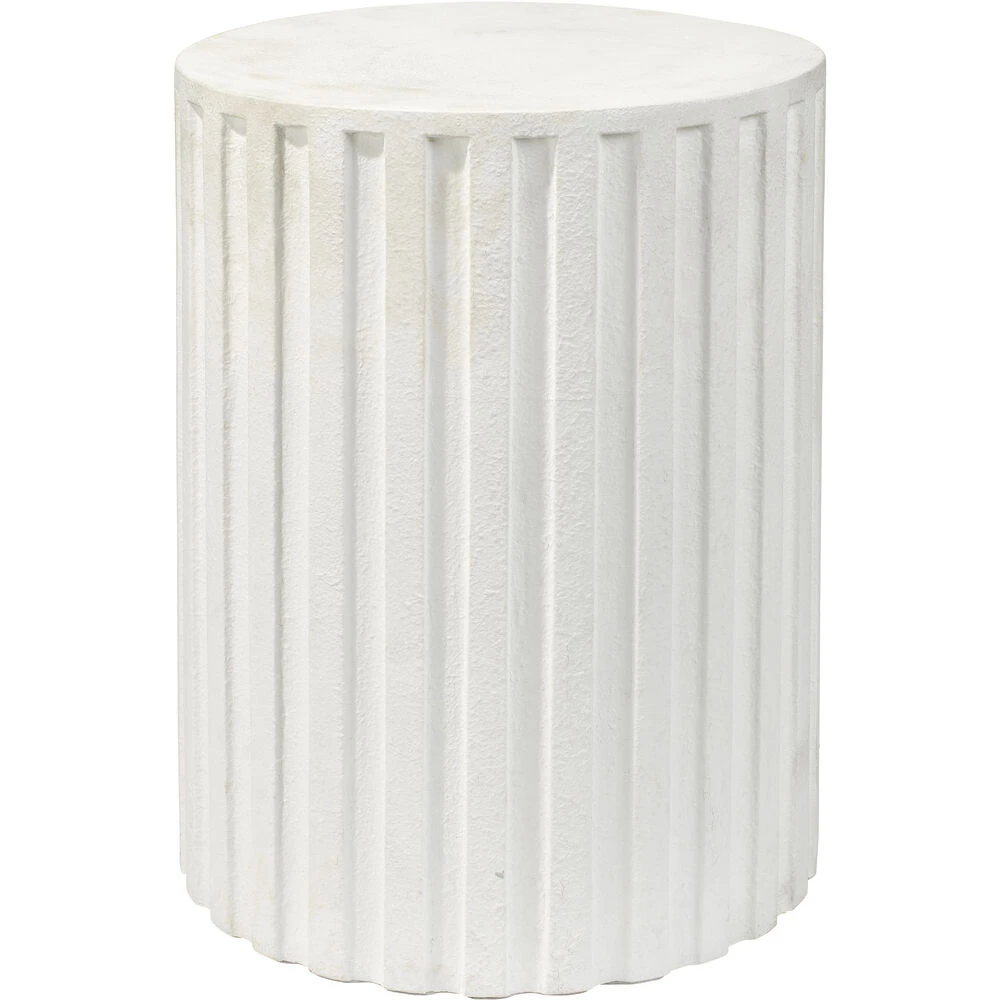 Fluted edges inspired by Roman ruins ring these circular side tables. They are made of cement and feature an antiqued neutral finish that adds to their charm. Casual yet elegant, simple yet substantial, they are a perfect choice for today’s homes. Indoor use only please.