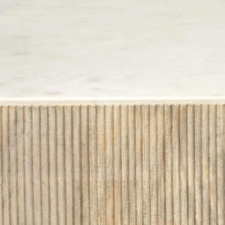 Argan 20 X 18 Inch Natural Wood & White Marble Table, Hexagon