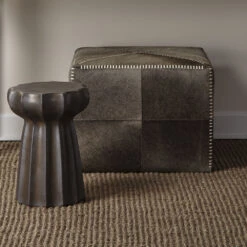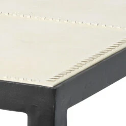 Nevado 26 X 26 Inch Off White Leather & Black Forged Iron Side Table