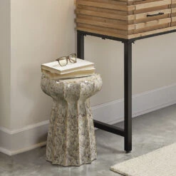 Horizon Striped 21 X 15 Inch Grey / Black / White Ceramic Side Table