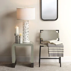 Radiant 21 X 20 Inch Light Grey & Beige Faux Horn W/ Light Grey Lacquer Side Table