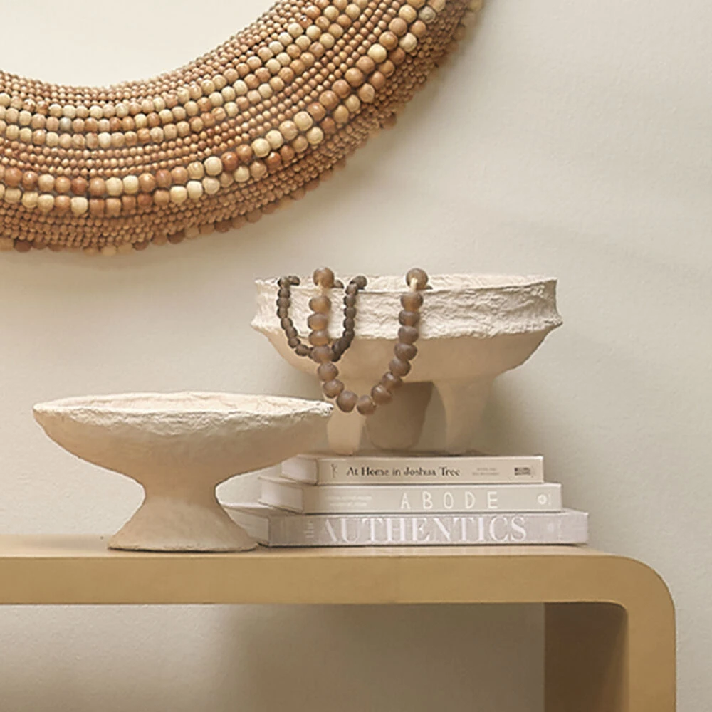A traditional craft in the East since ancient times, the distinctly organic characteristics of papier mâché objects make them an enduring and timeless home décor element. These cotton mâché bowls are a riot of texture and dimensionality. They can be filled; try glass deco balls for refinement, or seed pods to continue the organic motif. With their soft, dusty color palette, these one-of-a-kind artisan crafted pieces are stunning alone or as part of a coordinated display. For decorative use only.