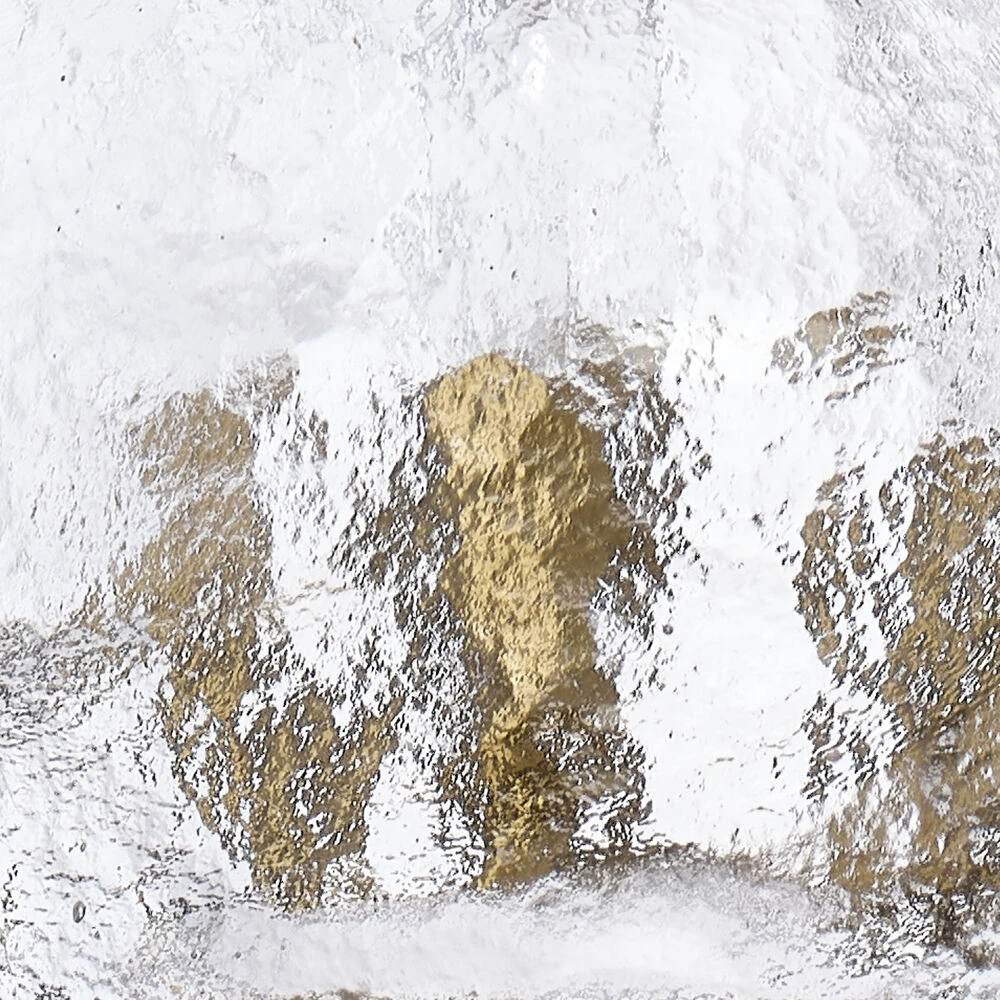 A refined study in contrasts, this striking chandelier features slabs ice-like glass that soften and diffuse the “flame” of the bulbs behind it. A burnished metal canopy and chain perfectly complement the richly textured glass. Sophisticated yet simple, it is a wonderful choice above a farmhouse dining table.