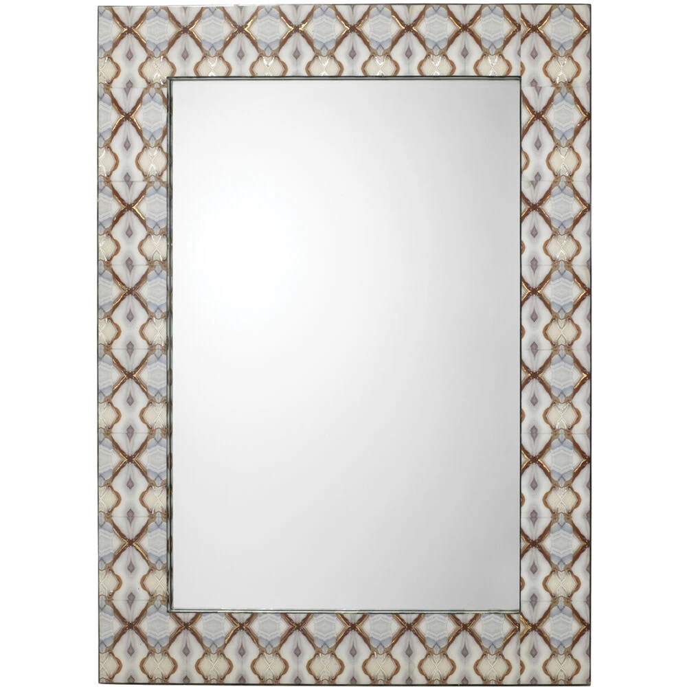 The design on the frame of this alluring mirror is taken from photos of agate repeated in a way that gives the impression of looking through a kaleidoscope. The hand applied gold leafing adds another layer to create this incredible finish.
