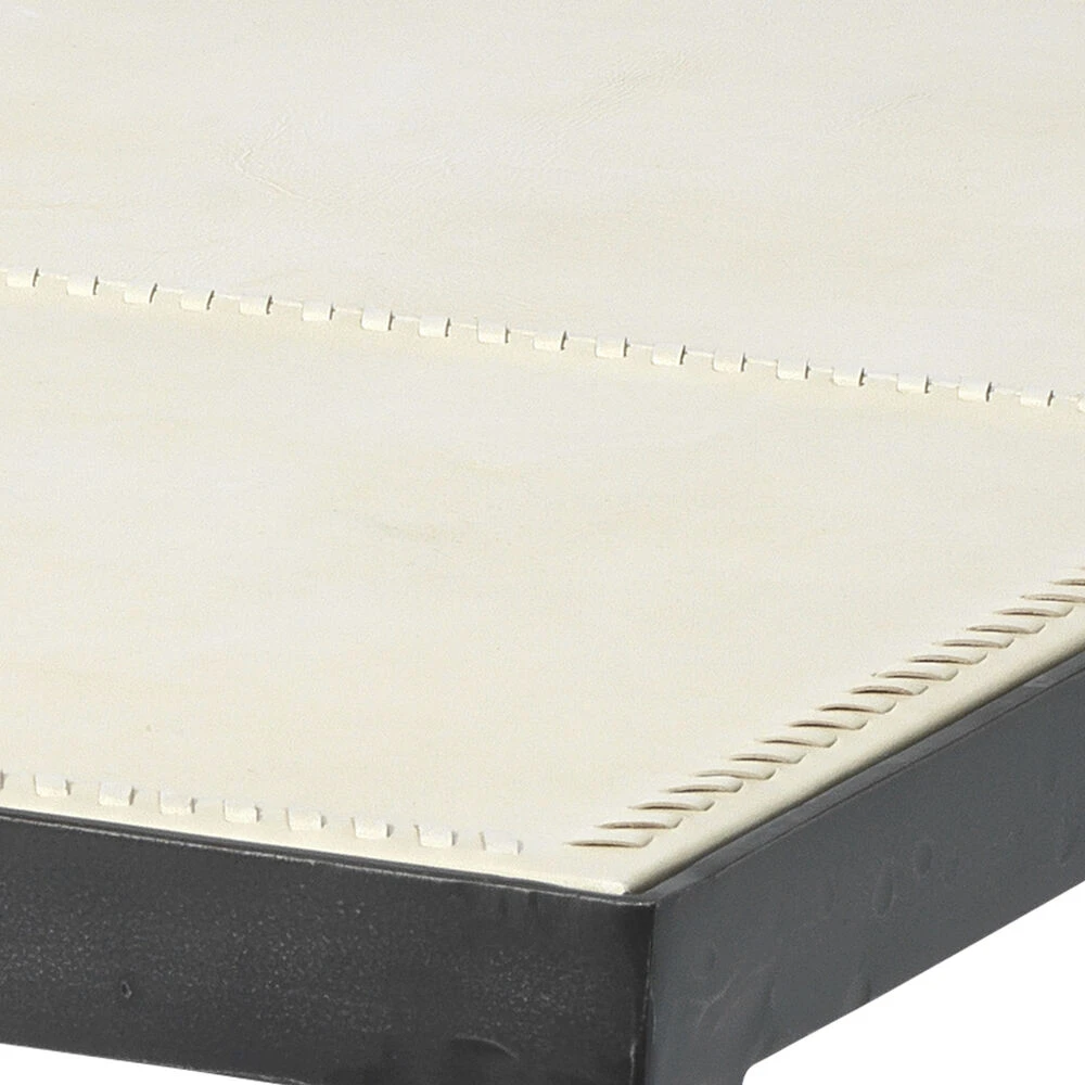 Off-white leather contrasts boldly with hand-forged iron legs in this artisan crafted accent table. The sabered legs and visible stitching add interest. Pair with our Abilene, Sweetwater, or Asher Chair for a unpredictable and stylish grouping.