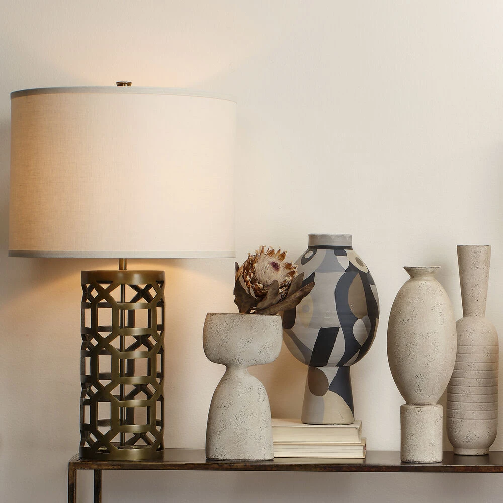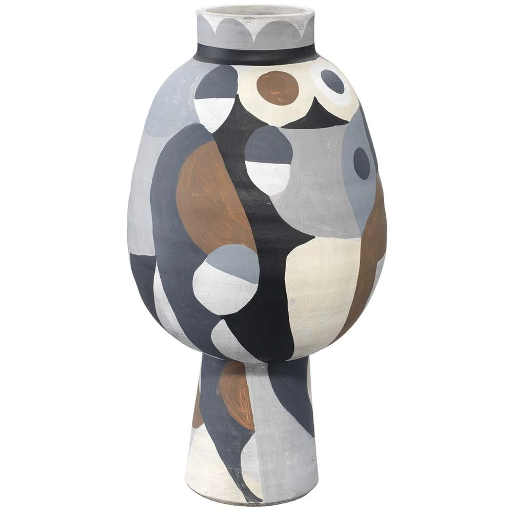 The Pablo Medium Vase is a hand-painted decorative vase to add a modern touch of interest to your home. Its matte cubist design was inspired by the Impressionist painter Pablo Picasso and features hand-done brush strokes and imperfect lines to create an artisanal look. The neutral color-blocked palette allows this modern piece to blend into almost any environment.