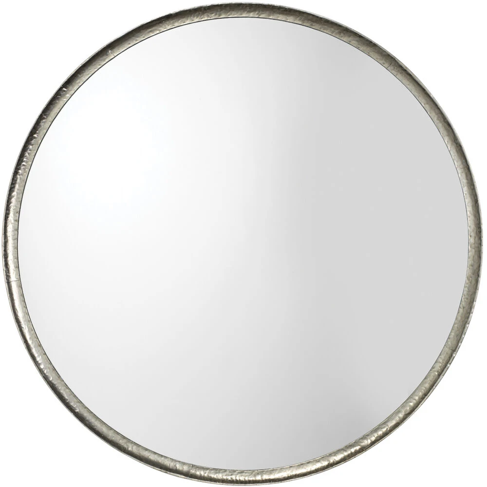 The perfect round mirror in an antique silver finish is 36″ diameter. It has a very clean profile and can work in modern, coastal, contemporary or transitional settings.