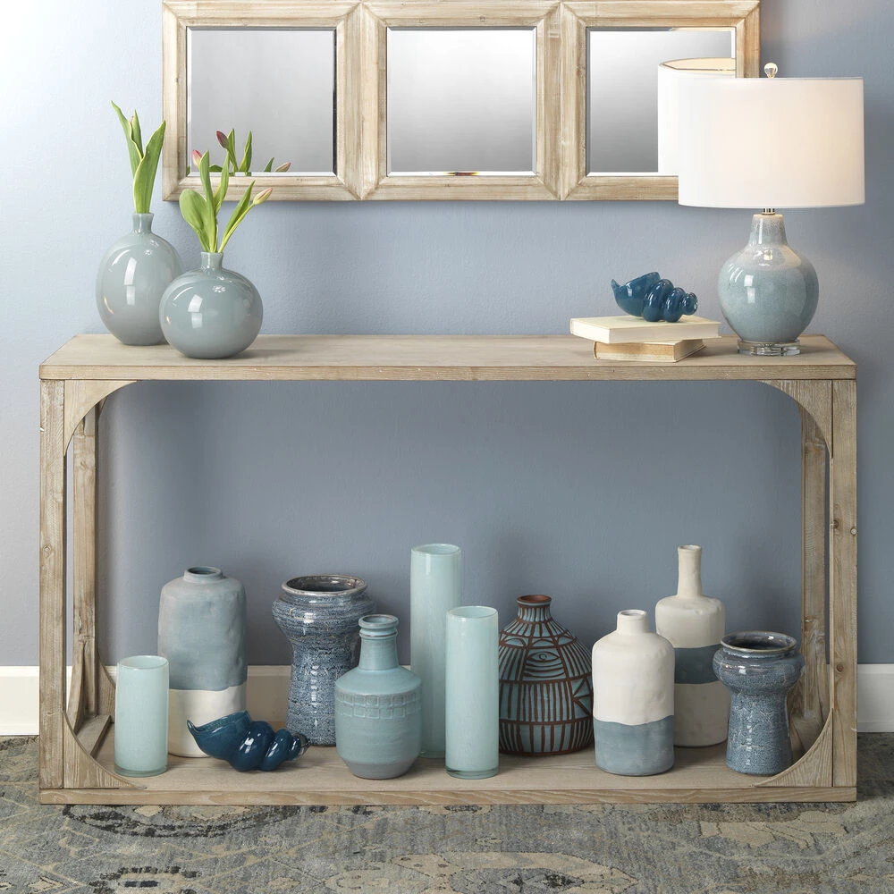 This set of vessels is ready to style any table top or windowsill it meets. Crafted and glazed by hand, these ceramic vessels feature an organic shape and imperfect lines in matte blue and white. Show off your favorite bundle of faux florals or let these vases wow on their own.