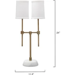 Minerva 52 Inch 40.00 Watt Antique Brass & White Marble Twin Shade Floor Lamp Portable Light