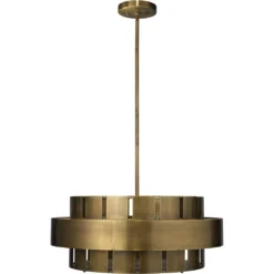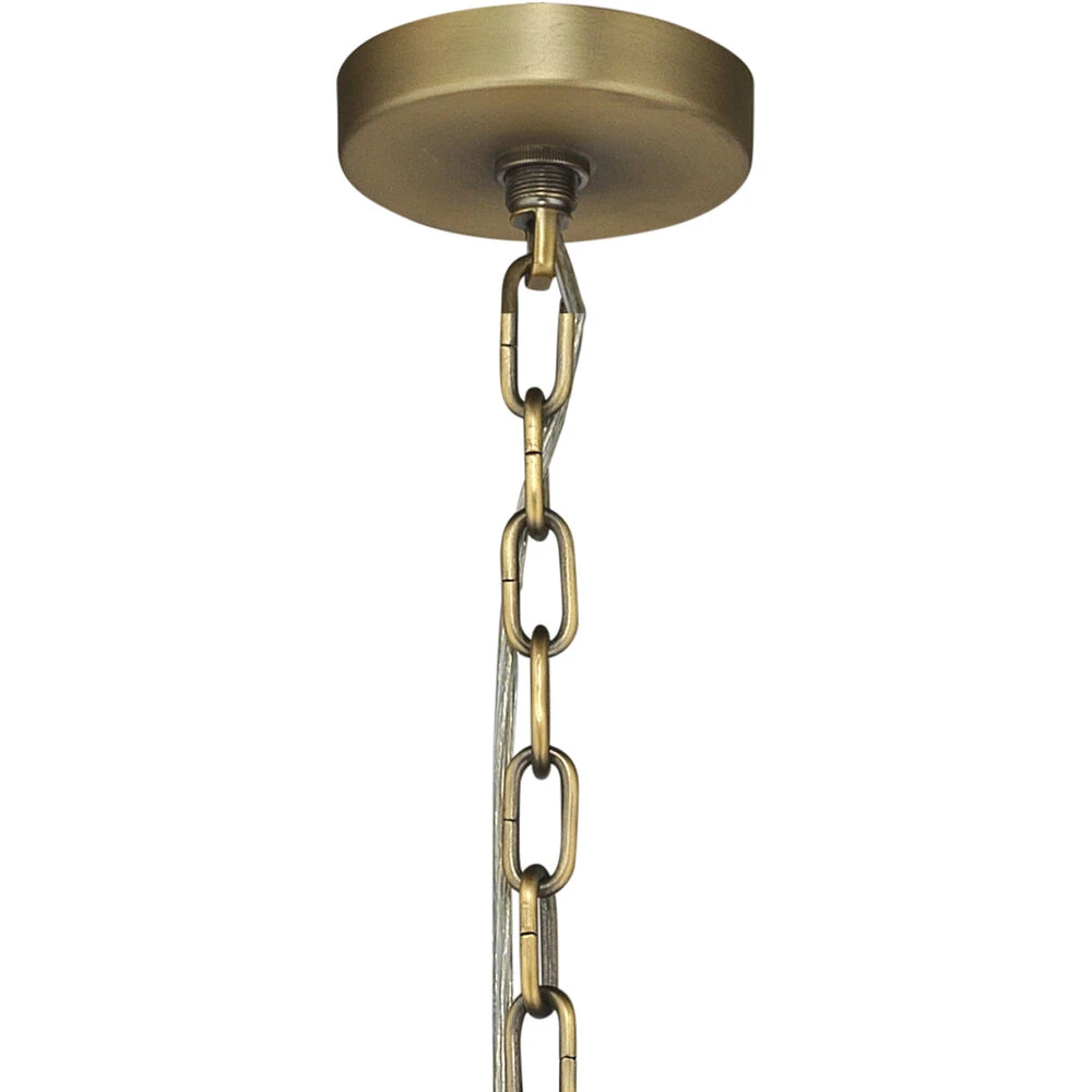 Our Upsala Chandelier is a statement worthy fixture in crisp white alabaster trimmed in warm antique brass. The jaw-draping circumference is accented with brass posts to extend the design in an architectural, airy way. This piece truly exhibits all around glamour!