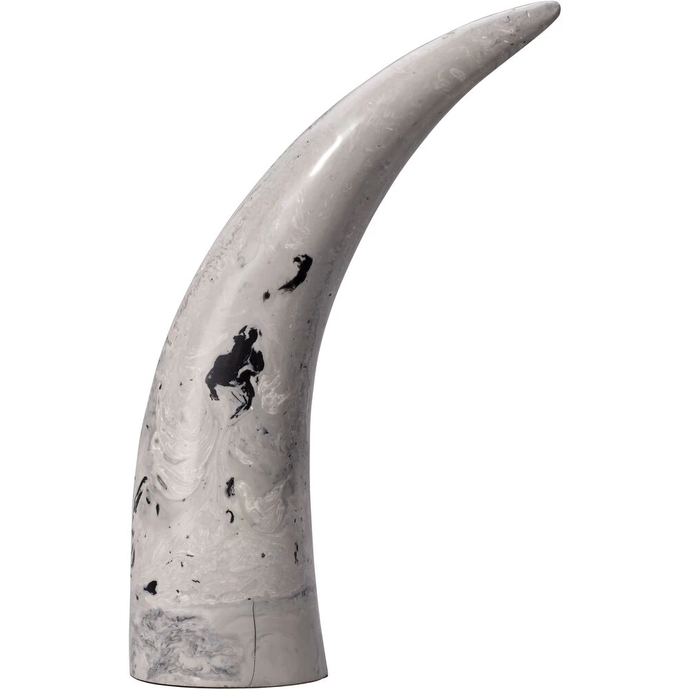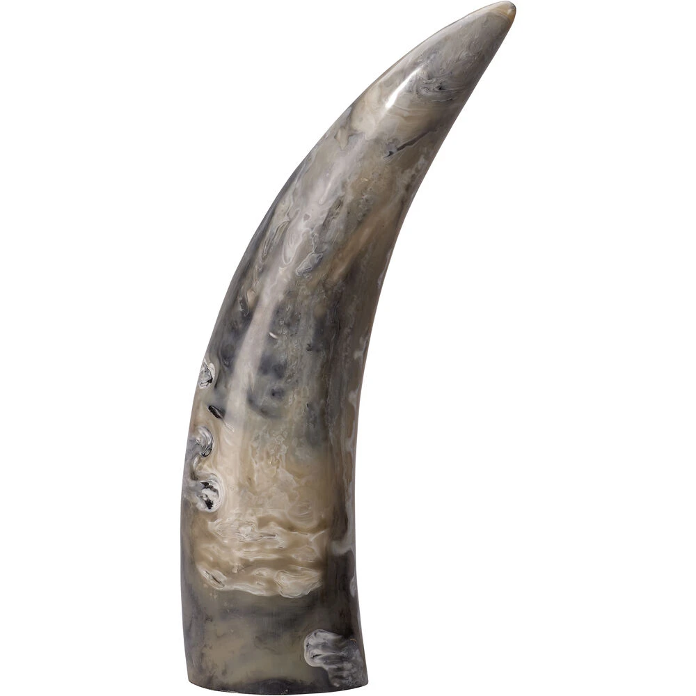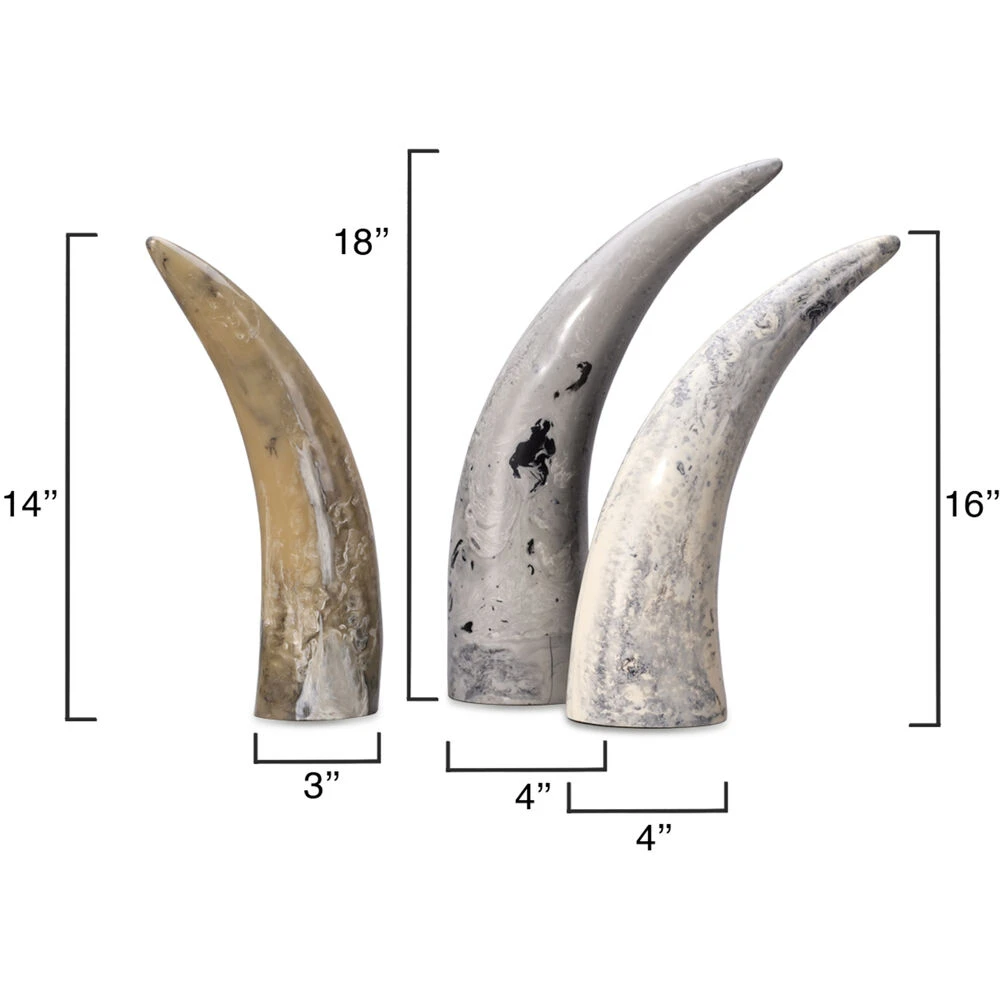A dramatic reinterpretation of natural horn décor, our trio of sculptural accents is formed of swirled resin in cream, black, and gray. Each piece is one of a kind, as no two sets of patterns created using this technique are ever identical. Display on a bookshelf, console, or coffee table for the vertical accent that your décor is missing.